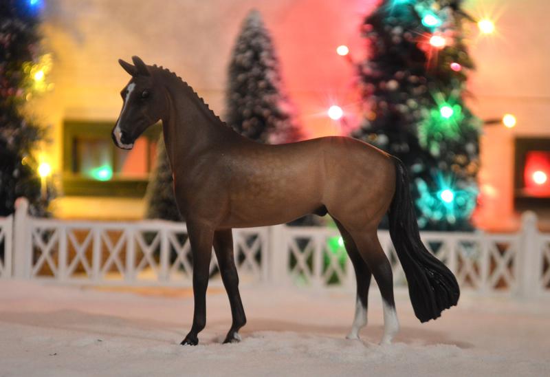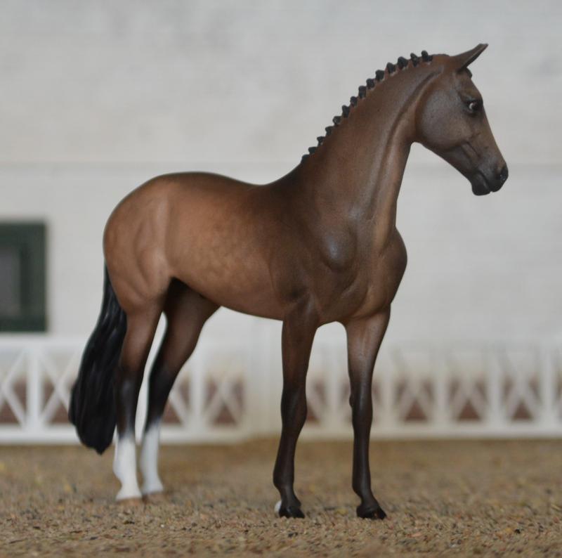 Custom Breyer Stablemate Resin Warmblood~another Ornament! This one is the Winx mold shrunk down. Sadly, his head doesn’t reduce well, so he had to have a complete face~lift, including new ears, a slight extension of the neck, and a head tuck ‘n turn. I think he makes a perfect Trekhaner! Also sports a hunter braided mane, and a fuller tail. Painted a light dapple mousy bay with just enough chrome. Something different for the sporthorse mini division! Really elegant. $475.00