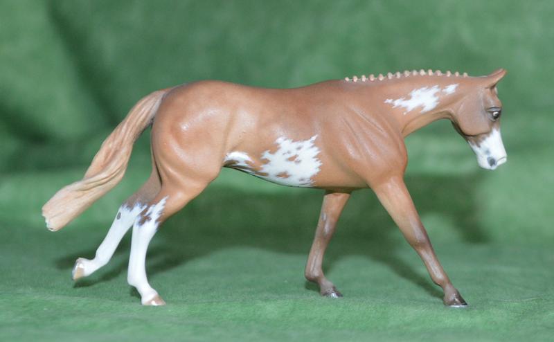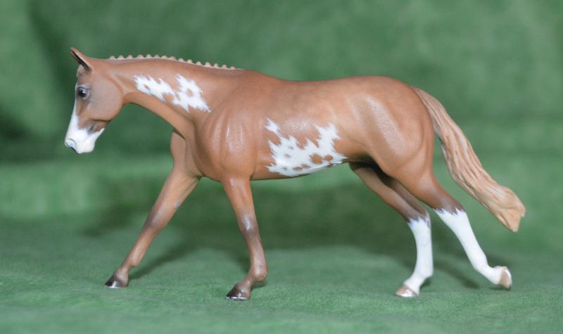 Sculpted by D'Arry Jone Frank, and produced by Horsing Around of England. She sports a hunter braided mane, and a custom loose tail. She is painted a moderately flashy chestnut overo with flaxen mane and tail. I only have a couple of these bodies left to paint! $450.00