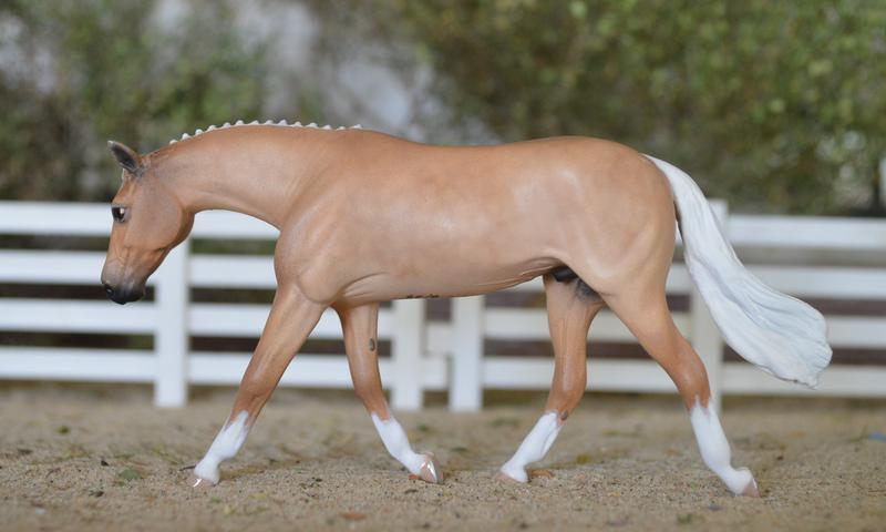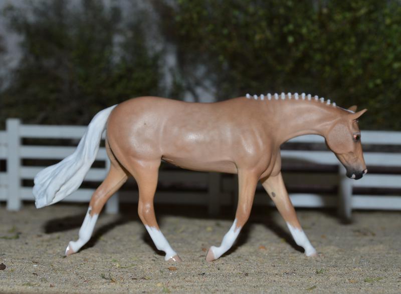 REMINGTON~Custom Stablemate scale resin Thoroughbred-sculpted by D’Arry Jone Frank. Limited edition of 25, I MIGHT have one more body to paint…Braided mane and custom loose tail, painted a creamy dapple palomino with moderate chrome. $400.00
